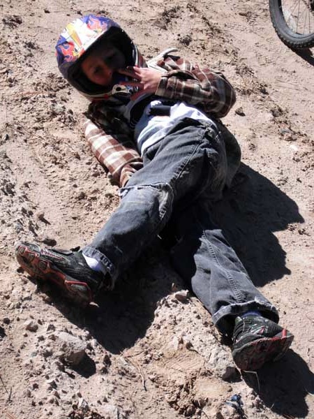 | I am a bit conflicted about teaching kids to use a helmet. On the one hand, I think it is a good idea. On the other, I have never used one and don't anticipate starting anytime soon, so for me to insist that they be used seems a bit hypocritical. Still, I applauded Wyatt's choice. |