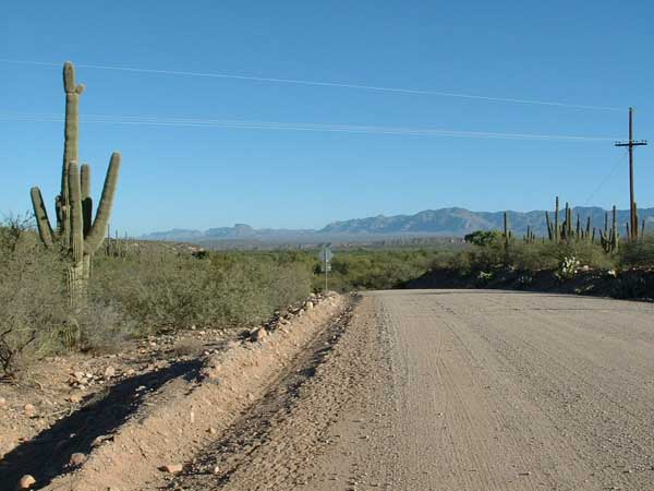 | This weekend (10-17-09) I officially opened what I hope will become an ocean to ocean bicycle trip. I rode from where the pavement ends on San Pedro River Road (the point where I often turn around on my lunch rides), up the San Pedro Valley to Benson (note that "up" is the operative word here). It was a taxing day, and I hope this inauspicious start is not a bad omen. I would not be surprised if this short route turns out to be the hardest leg of the whole 3,000 mile journey. |