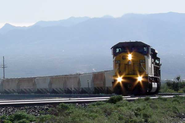 | The problem was, that I am not used to walking. After three miles of straight and relative level, the pipeline dropped down off the mesa, and crossed a pair of very busy (I counted 8 trains in the two hours I walked parallel to it) railroad tracks. I followed the tracks until coming near the freeway frontage road, and then follow it straight to my car. |