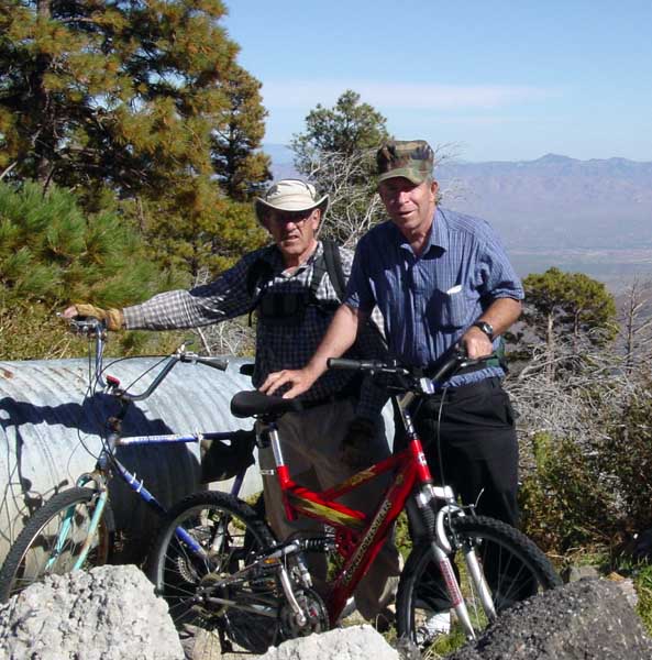 We decided to drop down into the canyon, and after another eternity of roads too steep to ride, we reached the bottom and crossed the creek (which, fortunately, was dry). From there we were able to ride, and covered the remaining distance making relatively good time. Barbara rescued us at the Peppersauce Campground at about 9:30 p.m. Looking at the map, we traveled 7 miles to reach the top of Peppersauces Wash. If we had stayed on the trail, it would have required traversing another 5.5 miles to reach home, most of which would not have been "bicycle friendly." Further, we would have had to descend another 1600 or 1700 feet. I'm comfortable we made the right choice. |