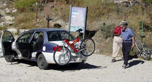 At any rate, Dave and I decided make an attempt at bicycling down Mt. Lemon. We were fortunate to be able to enlist Barbara's aid, and she drove the car home from the Oracle Ridge trail head. Note from Barbara: Now is the time to go up the mountains. The leaves are changing colors and are quite beautiful. |