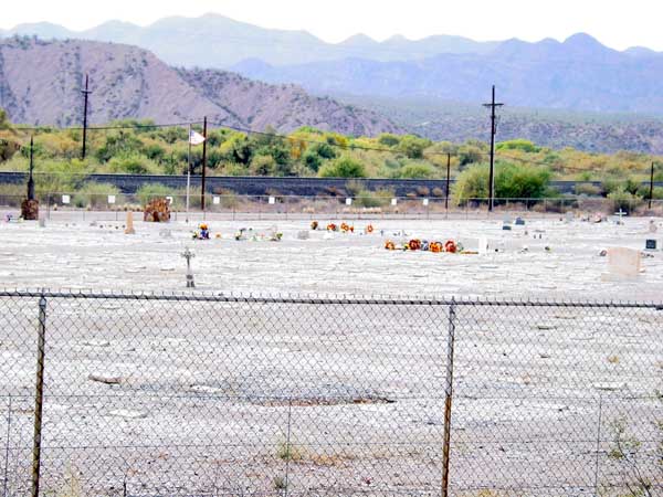 | The cemetary in Kearny is one of the most desolate places I have ever seen. I can't decide if they have treated the ground such that nothing grows, or if they clean out the weeds and vegetation on a regular basis. What ever their policy, it is the closest to a "scortched earth" landscape I have seen covering a burial ground. |