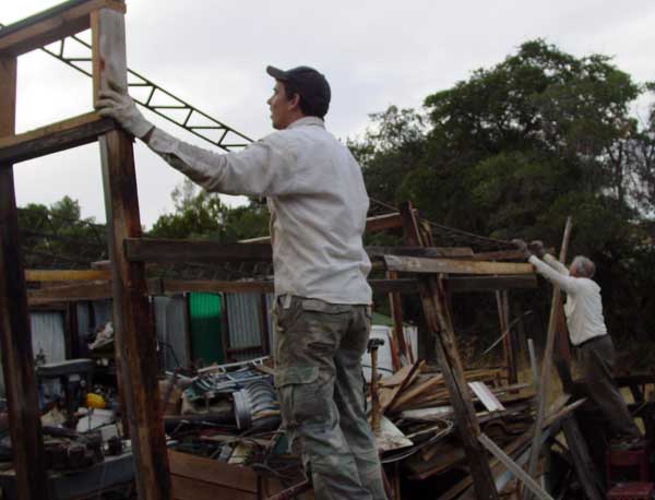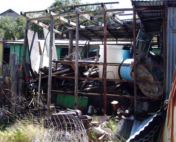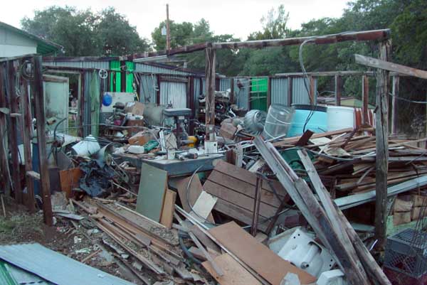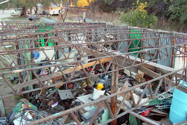 | Losing the shed roof meant that it would get wet, and much of it would be ruined. I don't have many compunctions about discarding ruined stuff, so maybe I should have let it set until I could part with it all. |