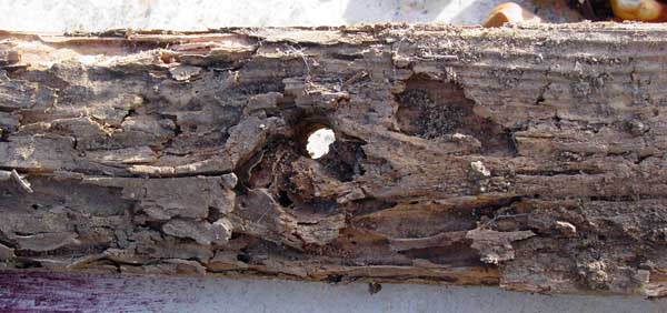 | As you are no doubt aware, there is an unwritten law of the universe that declares any remodeling project will expand. This one was not an exception. Pictured here is the bottom plate on which the south wall of the shed sat. I really didn't want to replace it, but given that I could literally grab a handful of wood and crumble it between my fingers, I didn't have much choice. Years of neglect can not easily be undone. |