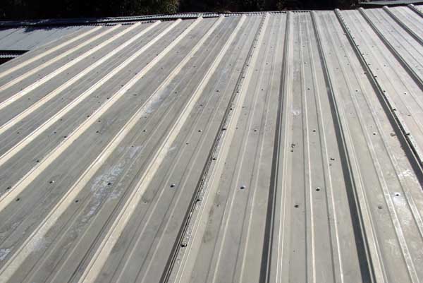 We tied the roof down with 293 bolts with washers, lock washers, and nuts. That is probable more than is necessary, but if the roof moves at all, the wind will work the metal, causing fatigue and eventually failure. In addition to the bolts, I tied the three-foot sections together along the tops of the ridges where they over lap, using tar covered, self-tapping screws. I filled all the hole already present. The metal roofing came with the self-tapping screws that were removed from it when it was salvaged, so I then covered the existing holes with roofing tar and then stuck a self-tapping screw in each. I plan to give the tar a couple of weeks to dry, and then go over the whole roof with some elastomeric roof coating paint to seal the crack and crevices around the bolt heads. When that is done, I have high hopes of having a dry shed for some years to come. |