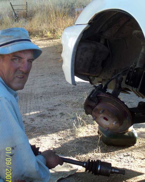 | After a couple of terse telephone conversations, Lady Luck smiled on me and I located a rebuilt transaxle in Tucson. Surprisingly enough, reassembly was unremarkable. But... One end of the transaxle sits in the transmission, such that removing it causes the loss of some oil. According to the manuel, the filler hole/level indicator is located on the front of the engine. Not so! Google located a site that placed it on the side of the transmission, and there is something there... but I don't own a tool capable of persuading the plug to budge. |