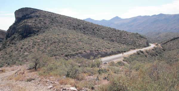 | On another weekend, I rode the motorized bike (round trip) to the Dairy Queen at Picacho Peak. I had spent a couple of days correcting a few minor bugs, and this trip went reasonably well (if you don't count the three times the gas tank slid around the tube on which it is mounted and splashed gas/oil down my pant leg [a problem I later corrected with a few turns of a retaining nut]). The literature says the tank holds 2 liters. This is obviously a round number with the exact volume depending on how you define "full tank." On this trip I burned two "full" tanks, and assuming an even 2 liter volume, I got 84.2 mpg on the first tank and 80.4 on the second. Not being content with those approximations, I took the bike to the relatively flat section of road heading southeast from San Manuel. There I emptied the gas tank (by running it dry [as evidenced by the motor stopping]), then added a measured amount of fuel using a graduated cylinder and recorded the distance the bike ran before stopping again. I repeated this process four times and calculated the mpg values at 101.7, 95.2, 102.0, and 95.9. This wasn't a prefect measuring system, as establishing gravity fed flow through the cutoff valve, fuel tubing, and filter was problematic. Further, on the other end, the motor sometimes sputtered for perhaps as much as a tenth of a mile before dying. But, it is the best estimation I have, and after averaging these values, I am going to claim 98.9 mpg. I had hoped to ride this bike from Oracle to Eagar, but summer ended before I made the attempt. I regarded this proposed trip as a major feat to be approached with some trepidation, until I realized that round trip ride to Picacho Peak, was just three miles less than half the distance to Eagar. I now suspect it would have been a piece of cake... |
