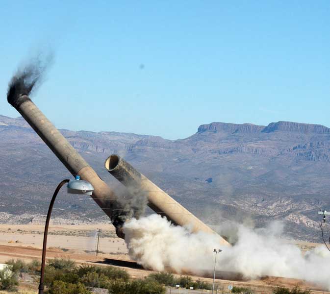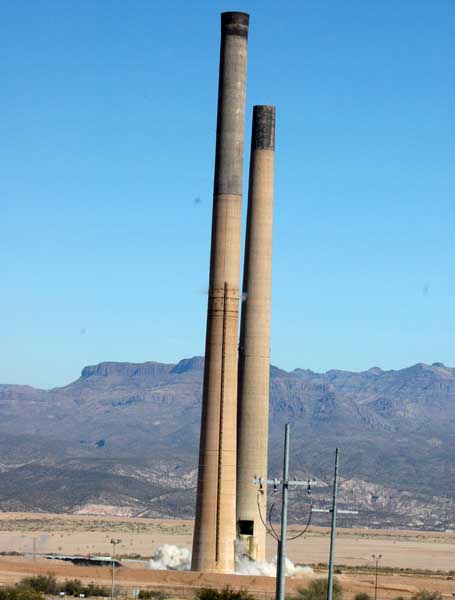Well, the big news here is that Magma's smoke stacks (reported to be 500 feet tall) that have graced the San Pedro Valley skyline for the last 50 years came tumbling down today.
