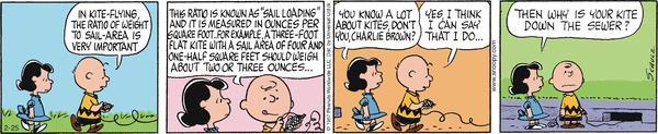 I read the comics almost every day, and occasionally one of them will seem like it pertains to someone I know. Spring is near, and with it comes kite season. Charley Brown and I share a lot when it comes to kites...