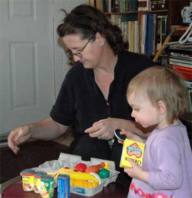Notice who gave Abbie the real food, and who provided "toy" food.Barbara received a message from Mia a few days ago. While Mia was going over names for the soon to arrive new "Baby" Ramsay, she would ask Abbie who the people were in the various photos that she pointed to. Well, when Mia pointed to Grandma Barbara, Abbie said "Bubbles!!" So you know how she remembers Grandma! Of course we thought that was really a cute remark! Of course you can imagine what Grandpa had to say about that. (And we thought Barbara's previous career as a dancer was such a well hidden secret...) |