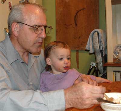 One nice thing about family festivities is that they bring grandchildren. Abbie is obviously well advanced along the path to mastering the fine art of getting her way, and Grandma was a pushover for one so practiced. Still, it was fun to watch...