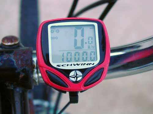 | The old mountain bike has kind of become my default choice and I ride it most of the time. I noted that in my letter dated 3-22-09, I spoke of just having resurrected the machine, so I guess I have been using it for about a year. Normally I keep the trip odometer displayed, but I pushed the wrong button while trying to reset it, and the total odometer reading popped up. I was surprised to learn that I had just coasted past 1000 miles. That much in a year is more than I would have guessed. Maybe distance also flies when you are having fun... I returned from my lunch bicycle ride a bit early one day and on a whim, decided to inspect the bicycle tires for thorns. I located and removed several, and in four cases, green slime (the internal bicycle tube patch kit) oozed out. A single spin of the wheel caused the oozing to stop and to my surprise, both tires remained inflated (day 8 as of this writing). I don't claim to understand how it works, but that goo is wonderful stuff, and I anticipate putting it in every tube of every bicycle I use. |