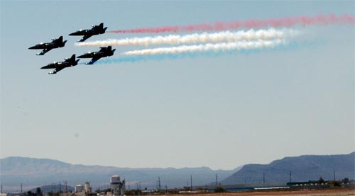 | March 20th, AJ, Brittney, and I went to the Davis-Monthan Air Show. I didn't calendar very well, and ended up with a conflict in the morning--a Ward Service project. It was announced to start at 9 am and last about 2 hours. Not wanting to work until 11, I came early (8 am), only to find that the project was well under way. We were finished by about 9:15, and I left from there. Barbara was planning on attending with us, but was not feeling well. We arrived about 11, and sat in traffic forever, and finally walked through the last check point just about noon. |