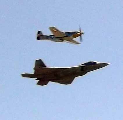 What is known as a "heritage flight" has become popular at airshows. It typically includes one or more vintage (WWII) aircraft flying along side the latest and greatest from our current arsenal. |