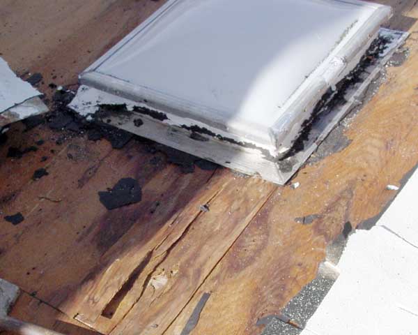 | Ten of the twelve roof protrusions in this area had leaked, and the damage varied from slight to "you risk your life if you step here." |