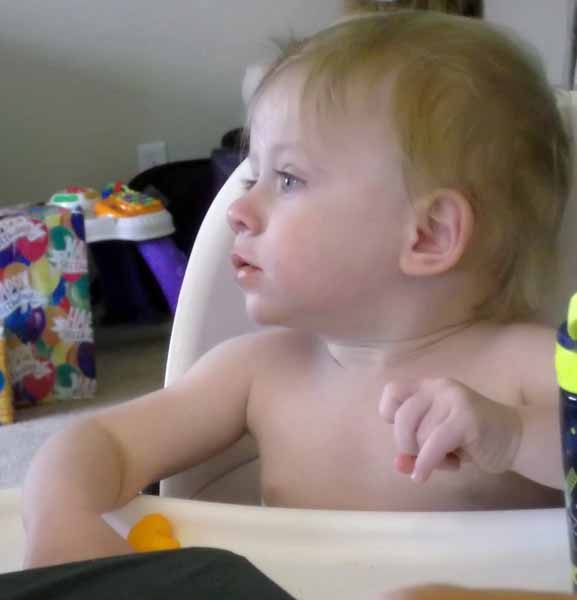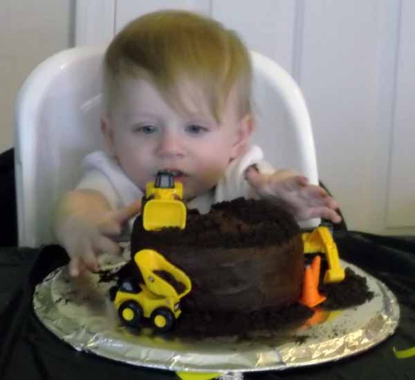 AL3 had his own cake, with the expectation that he was going to tear into it. The reality was that he limited his exuberance to licking a little of the frosting off his fingers. |