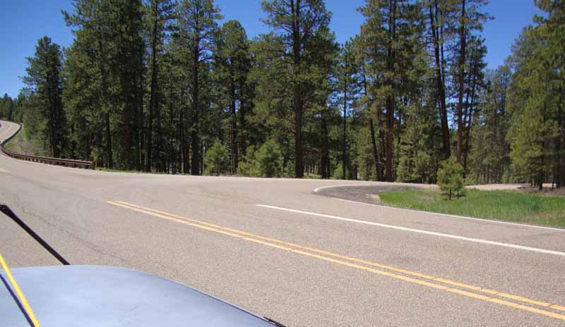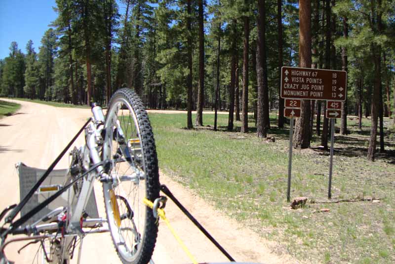 ![]() A short distance down Highway 67 (perhaps a couple of hundred yards) there is a road that turns off to the left. Other than announcing the presence of an RV Park, it is unmarked. Note: These photos were taken on a return trip, and our vehicle is pointed in the opposite direction of one going to the Bill Hall Trailhead (which is also called, "Monument Point.") |