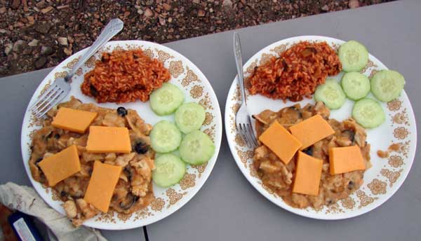 | We cooked in the gathering dusk and, as has become habitual on these trips, ate well... |