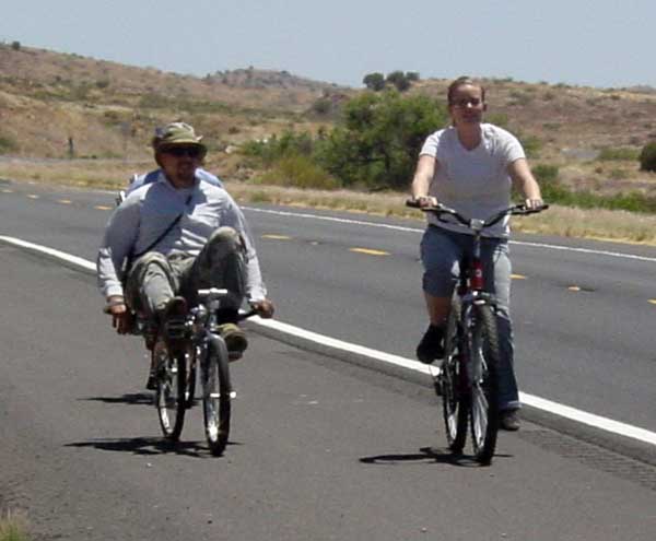 | The next morning we rode from Eureka to Santaquin (again both in Utah), down some significant slopes. I was riding Dave's bike, and reached a speed of just over 37 mph. Nathen's bicycle recorded a top speed of 40.3 mph, and he remarked that he was still able (barely) to engage the pedals at 40 mph. "When I get some time..." I am looking forward to testing the max speed of my "new" (to me) 72 gear Linear Recumbent. |