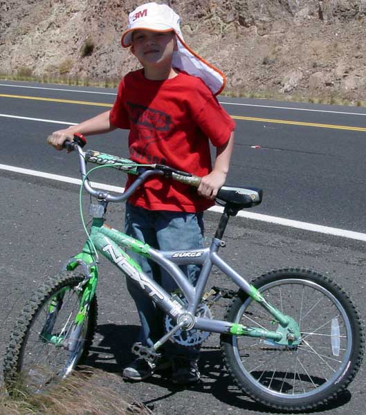 After extensive scheming, we devised a stratagem that allowed AJ to participate in two days of the event. The first, was the ride down Mt. Graham (after camping there the prior evening) and the second, was the group ride along the lower portion of the Coronado Trail. |