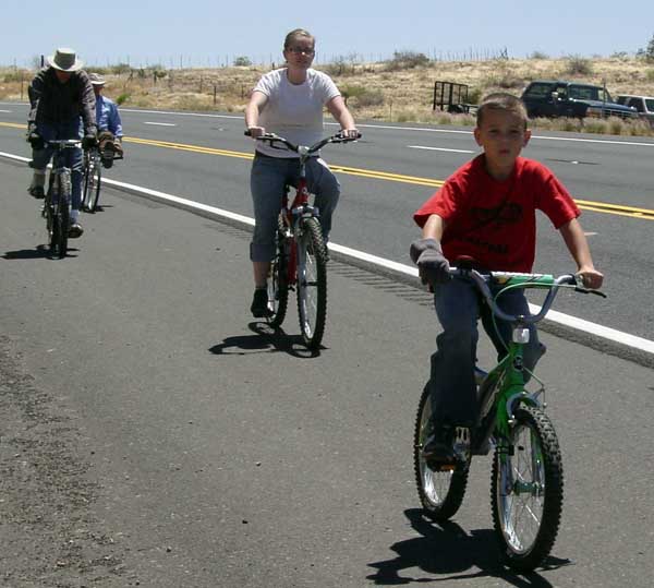 | We put Ethen in the front for a couple of reasons. First, drivers approaching from the rear would see several riders before encountering him, and second, that configuration minimized the possibility of him being left behind or feeling pressured to perform at an uncomfortable level. |