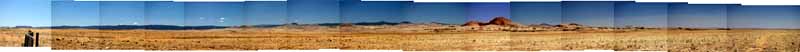 | This Friday, after attend the wedding reception for Denise Scorse in Snowflake, I visited Ameilia in Eagar and spent a short time the next day attending the reunion of the Mike and Margee Stroud families. When Ameilia left Oracle, her avowed intension was to "move to where there are pine trees." I stopped a couple of miles outside of Eagar, and shot the above photos. This collage depicts a 180-degree view. It is evident that, not only are there no pine trees, there are no trees of any kind. Ameilia always tended to go overboard. It appears that this time, true to form, she overshot the mark and now resides above the tree line. |