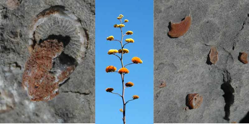 On the Fourth of July, I took a short hike in the area AJ calls, "El Capitan." It is the steep stretch between Winkleman and Globe. I am continuing to collect images of flowering desert vegetation, and had noted some uniquely colored century plants blooming there. Some of the rock that makes up that formation is also fossil bearing. In the days when I was still a "collector" I would have brought some of them home. Well, evening is here, the long weekend is finally over, and it is time for me to conduct a detailed examination of the back of my eyelids, checking for pinholes. Hope all of you are doing well. Alan |
