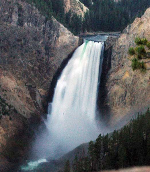 | This, for obvious reasons, is called the Grand Canyon of Yellowstone. It requires a much better photographer than I am to do justice to such a deep, steep, ravine. If you fell over the edge on a calm day, you could read half a dime novel before reaching the bottom. |