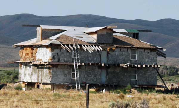 | For a number of years I have toyed with the idea of build a dwelling out of straw bales; so when I came across this example, I had to stop for a photo op. I can't decide whether this house is still being built, or has been abanded. I'll bet the walls don't allow the passage of significant amounts of heat and given Wyoming's winter, that is definitely a good thing. |