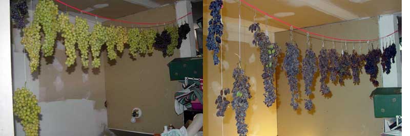 | I have a tooth that has become temperature and pressure sensitive. On July 5, I made a trek to the Sun Life dentist in Casa Grande. After glancing at the X-ray, she spent 10 seconds scratching at the tooth with a probe before announcing that I needed to see a specialist for a root canal. (Thank you very much, that will be $70.00 please!) The trip wasn't an entire waste, as I visited Saguaro Spice in Phoenix and the U-Pick grape vineyard in Florence. I limited myself to four large grocery bags full of grapes, which I calculated would cost most of the $20.00 in cash that I carried. (The office was located in the vineyard and didn't take plastic money.) After carefully weighing my pickings, they wanted only $4.00. I gave some grapes to Sabrina and Braxton. Barbara and I ate as many as we dared, and then we proceeded to dry the remainder into raisins. They don't look too bad now, but it will probably be a couple more weeks before the drying process is complete. I must say that this is ALOT easier than using bed (sheets on top of the sheds. Stay tuned for the next phase of picking the dried grapes off the stems! |