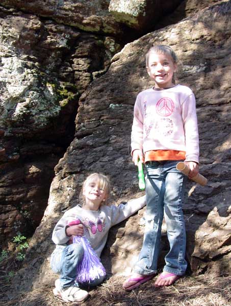 Abbie and Kylie were convinced they had discovered a vast under ground cavern, and were not the least bit perturbed that they couldn't find the opening. |