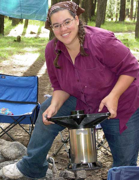 Sabrina made biscuits, and Ameilia made deep dish pizza. AJ (along with others) helped both of them with the dutch oven cooking. He seems to be acquiring some skill in that area. |