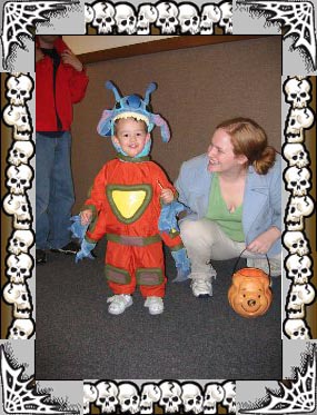Daniel dressed up as Stitch, from Lilo and Stitch. He hated his costume when he first put it on, especially the hood. However, he quickly recovered when he discovered people were giving out candy. |