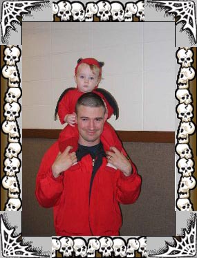 Kaleb "borrowed" Daniel's old costume and was an adorable devil. He, too, was not impressed by his headpiece and the distraction interfered with his practice walking.