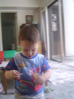 | DanielÝwas done before we even got to the air port | the next day he played stickers with nana |
