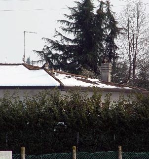 There were also Petcocks in Italy I was surprised. So I took picture of them. The Peacock is on top of the house. They might be hard to see but I'm sure that you all can make do.