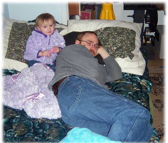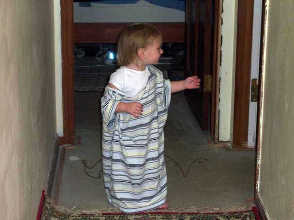 | While pregnant with Lauren we went through an ice storm and were with out power for 14 days. I was cold but did just fine. This time around I am really noticing the difference in how comfortable I am compared to my family. I was wearing pants and a short sleeved shirt and they well as you can see from the pictures had to put a couple more layers on. |