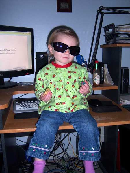 Lauren loves shoes, purses and glasses. She got a hold of my sunglasses and I had to pry them off of her. |