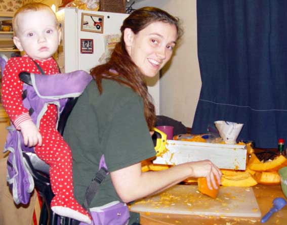 | I had the pumpkins seen in the photo that needed to be canned so, I began that process. Lauren and Carson were actually pretty helpful and we did almost all of it in one day. I started with two large Jack-O-Lantern pumpkins, four pie pumpkins and three small decorative pumpkins. I found that the small decorative pumpkins were not only really hard to cut they were very bitter and in the end I just threw them away. |