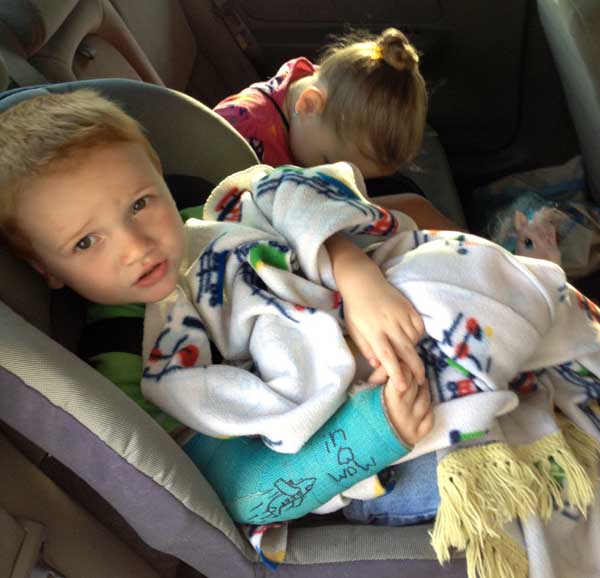 | Shortly thereafter Carson got his cast off. On first the day after returning home from visiting in Arizona, I took the kids to the aquarium here in Tulsa. Carson fell off a step and broke his arm. He wore a cast for three weeks. Fortunately, we had no major incidents of him using it as a weapon. It should be noted that in our ward there are 7 boys all of the same age and five of them broke an arm or a leg this past summer. Three of these accidents happened at our weekly play date! We since have stopped hanging out on Thursdays for fear of the other children's health. |