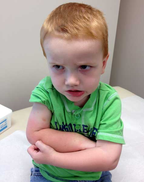 Carson had not qualms with them putting the cast on however this picture sums up how he felt about them using a saw to remove it! |