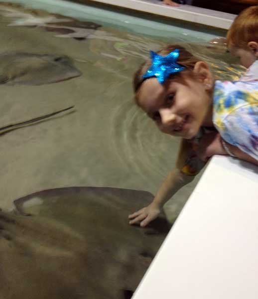Now that Lauren is old enough to have opinions and thoughts of her own I am already seeing me in her. Although all of her qualities I can not take credit for. This photo shows her petting a stingray. For those who knew me as a child will recall that I was a bit nervous around animals when they were in my care. Yet here she is, no fear, petting it! It should be noted that I still have some issues petting them even though I know full well that they cannot harm me! At the aquarium the attendees will tell you to stand behind your child as the stingrays like to jump out of the water and the child might get scared and fall off backwards from the step. I however am just as jumpy as the children so in this case I am of no help. |