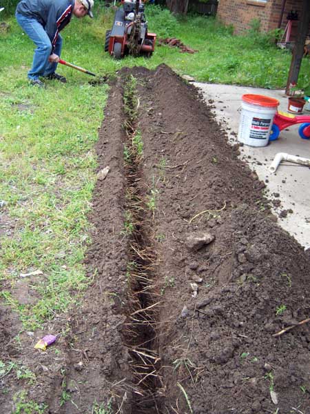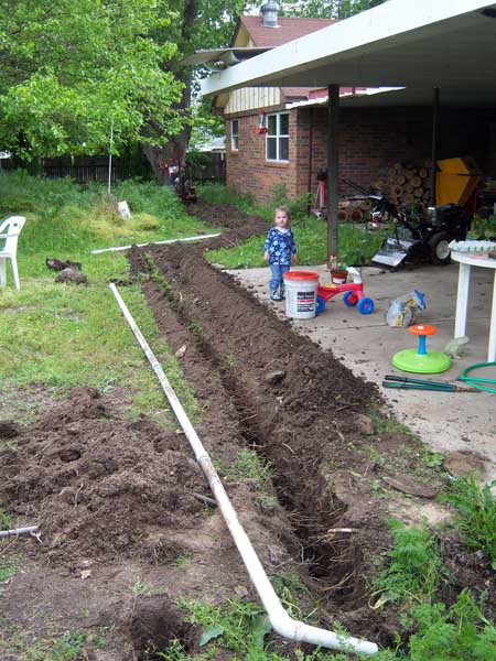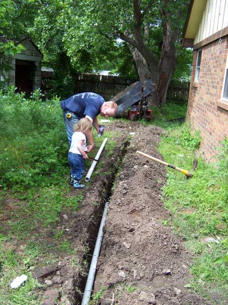 The previous owners also cut off the end of a T joint as a solution to a clogged pipe. It worked for some time but in the end to bugs and soggy ground were more then we could handle and thus we dug up the pipe, cleaned it out, and capped the hole. I do have to say all in all the project took longer then planned, but if I use the formula that dad provided in an earlier news letter I come away thinking we still came away from this project ahead. |