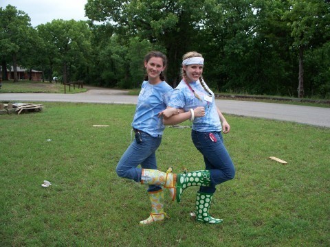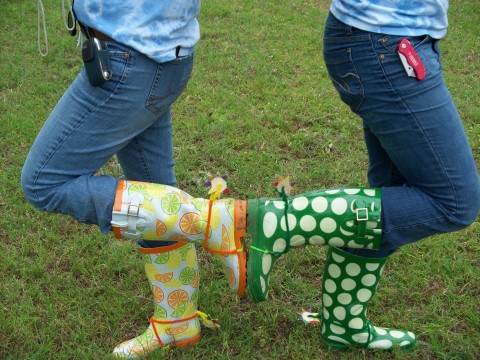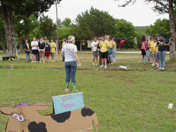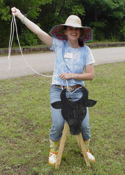 It WAS A BLAST! We made up an obstacle race where the girls had to dress in cowboy garb and then Shoe a horse, tip a cow, rope a steer, and plant a garden. |