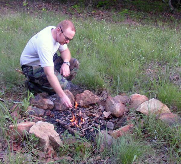 We bought a #10 can of tomato sauce and found that it could be dried out into power and then made back into tomato sauce. It's not the best tasting stuff I have ever had, but when you are hungry, it doesn't really matter. Since I'm master cook Zeke is left to do the fire bit. |