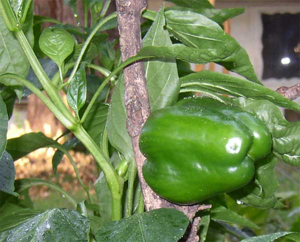 Our one bell pepper is also coming along quite well. I'm so proud of it. |