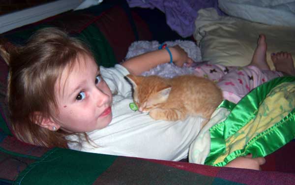 We had a strange bout of illness over the last couple of weeks. First Lauren was sick for 24 hrs couldn't keep anything down and just wanted to sleep. Then a day or so later Carson had a rash from head to tow and a low grade fever. He did that again two more time in the space of a week. Two days later Lauren was sick for 24 hrs again. Weird! Shortly before all this I brought home a little orange kitten. |