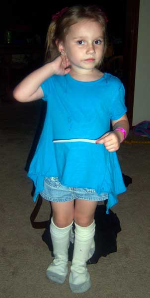 During the time that Lauren was sick she got up and asked me to hold her, than promptly puked down me back. She did this a couple of times before I caught on. |