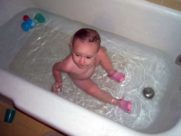 Mia once made the comment about her girls came being very girly in the fact that they love purses and dressing up that kind of thing. Lauren is a total girl when it comes to shoes. In fact the first thing she wants in the morning even before being taken out of her crib is to have shoes put on. Then of course she wants to change shoes about 4-5 times during the day if allowed. She took it to a new level in requesting to have shoes while she bathed. |