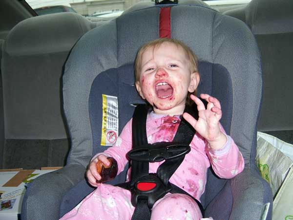 | After AJ and Brittney's visit we spent the next two weekends in MO helping Zeke's mom do some repairs to her house. Once again Lauren took advantage of the extra attention. (Look at the green, green grass and corn in the back ground Zeke's mom can grow anything. The trees behind the corn were stick last year and now thriving fruit trees. It is amazing!) |